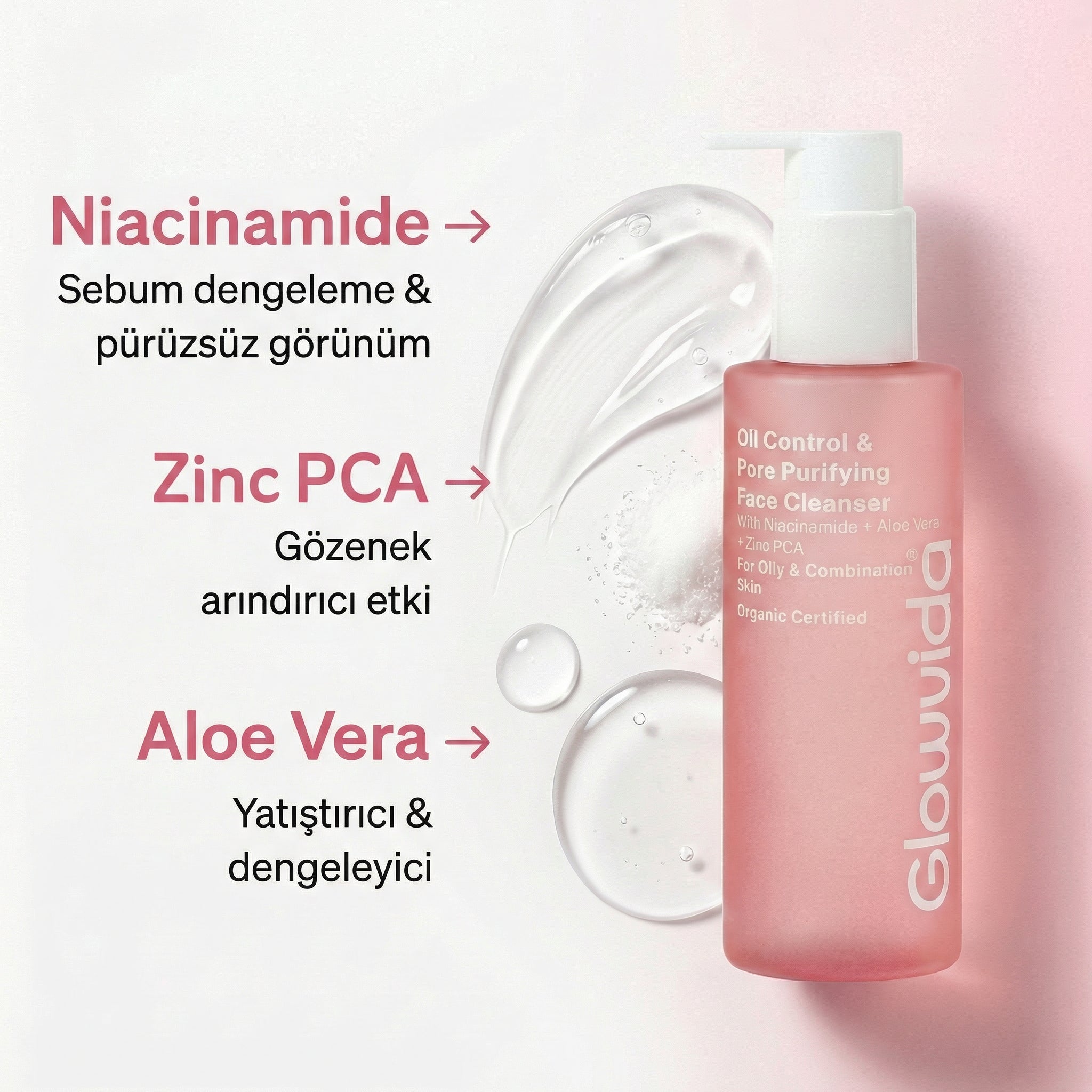 - Zinc PCA: Parlama kontrolüne yardımcı olur, sivilce oluşumunu desteklememeye yardımcı olur